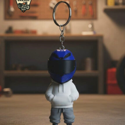 3D Baskı Lacivert-Beyaz Motorcu Anahtarlık – Motor & Motosiklet Anahtarlık