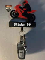 Hareketli Motorcu Figürlü Anahtarlık Askısı, motosiklet tutkunları için hem eğlenceli hem de fonksiyonel bir dekoratif üründür. Anahtarınızı askıya astığınız anda motorcu figürü ön kaldırma (wheelie) hareketi yaparak dikkat çekici bir görsel sunar.