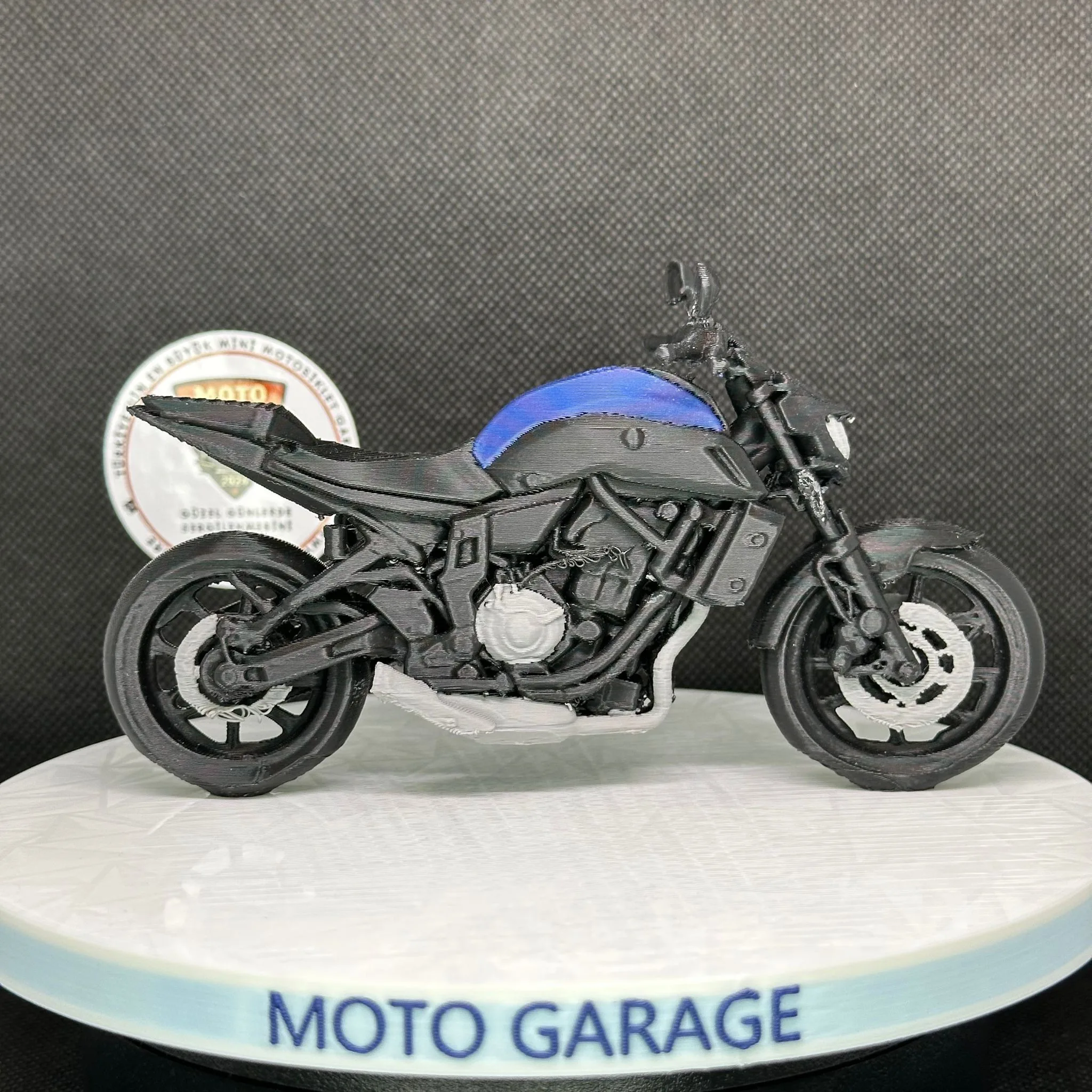 Yüksek çözünürlüklü 3D baskı teknolojisi ile üretilen model; gövde hatları, depo formu ve genel siluetiyle Yamaha MT-07’nin karakteristik çizgilerini başarılı şekilde yansıtır. Canlı renk geçişleri ve detaylı yüzey dokusu sayesinde vitrin, masa, raf veya ofis dekorasyonu için dikkat çekici bir objedir.