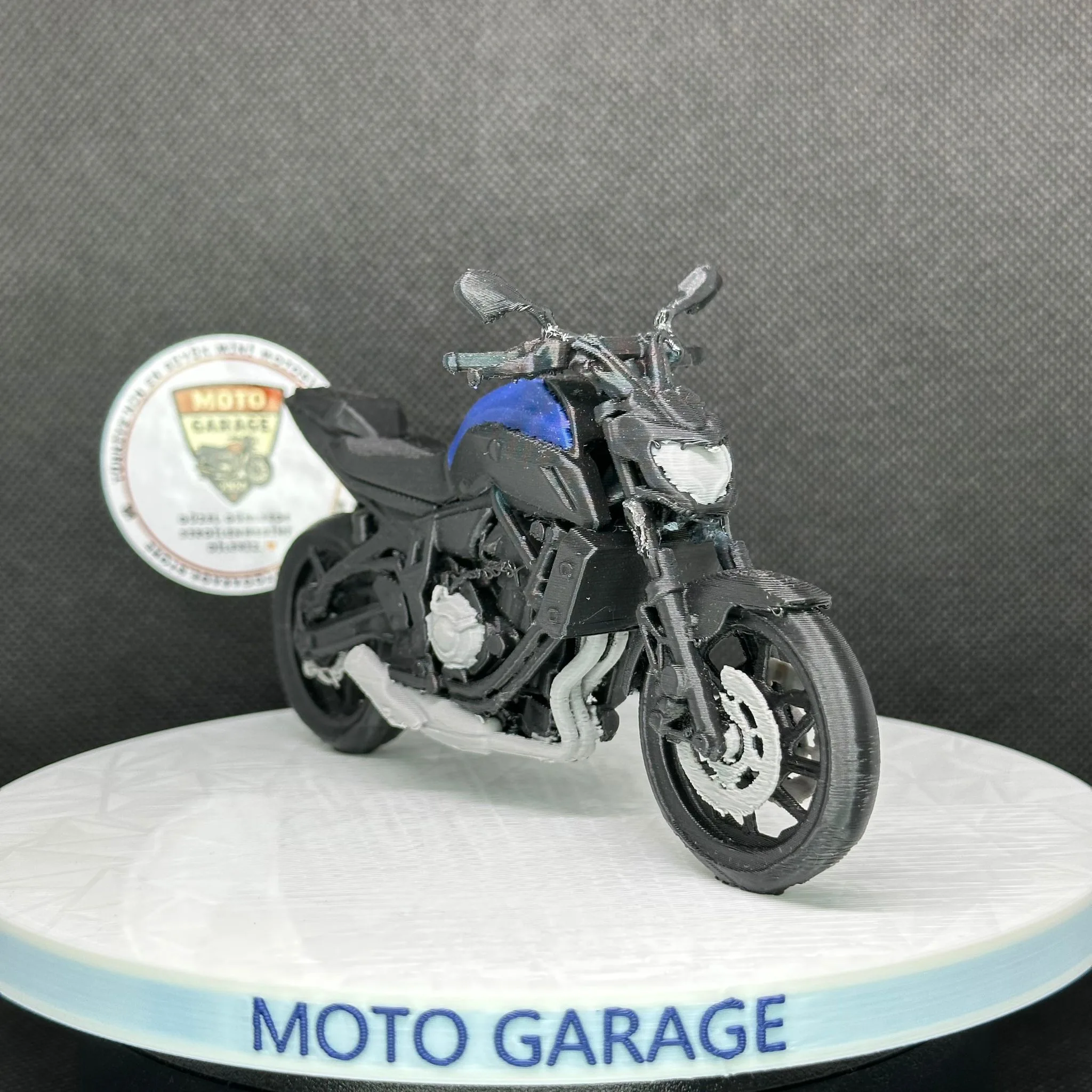 Yamaha MT-07 tutkunları için özel olarak tasarlanmış bu 3D renkli baskı dekoratif model, modern naked motosiklet tasarımını kompakt ve estetik bir formda sunar.