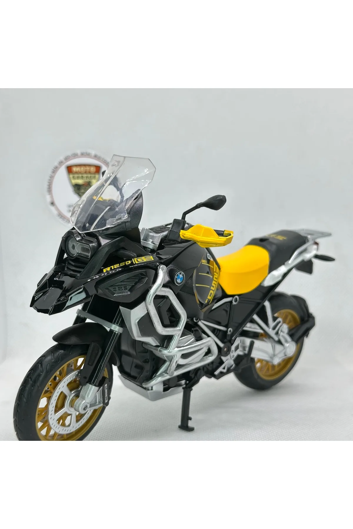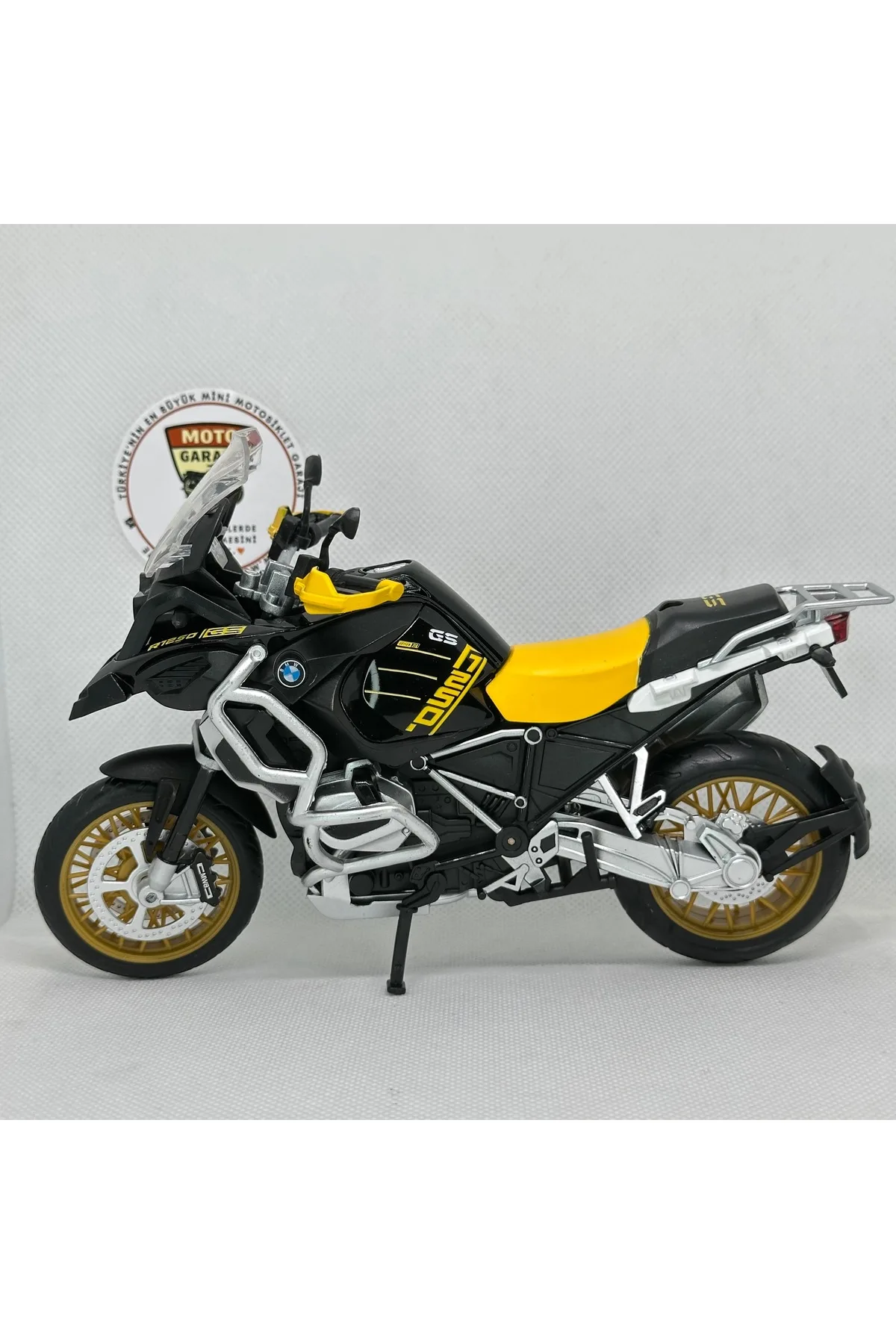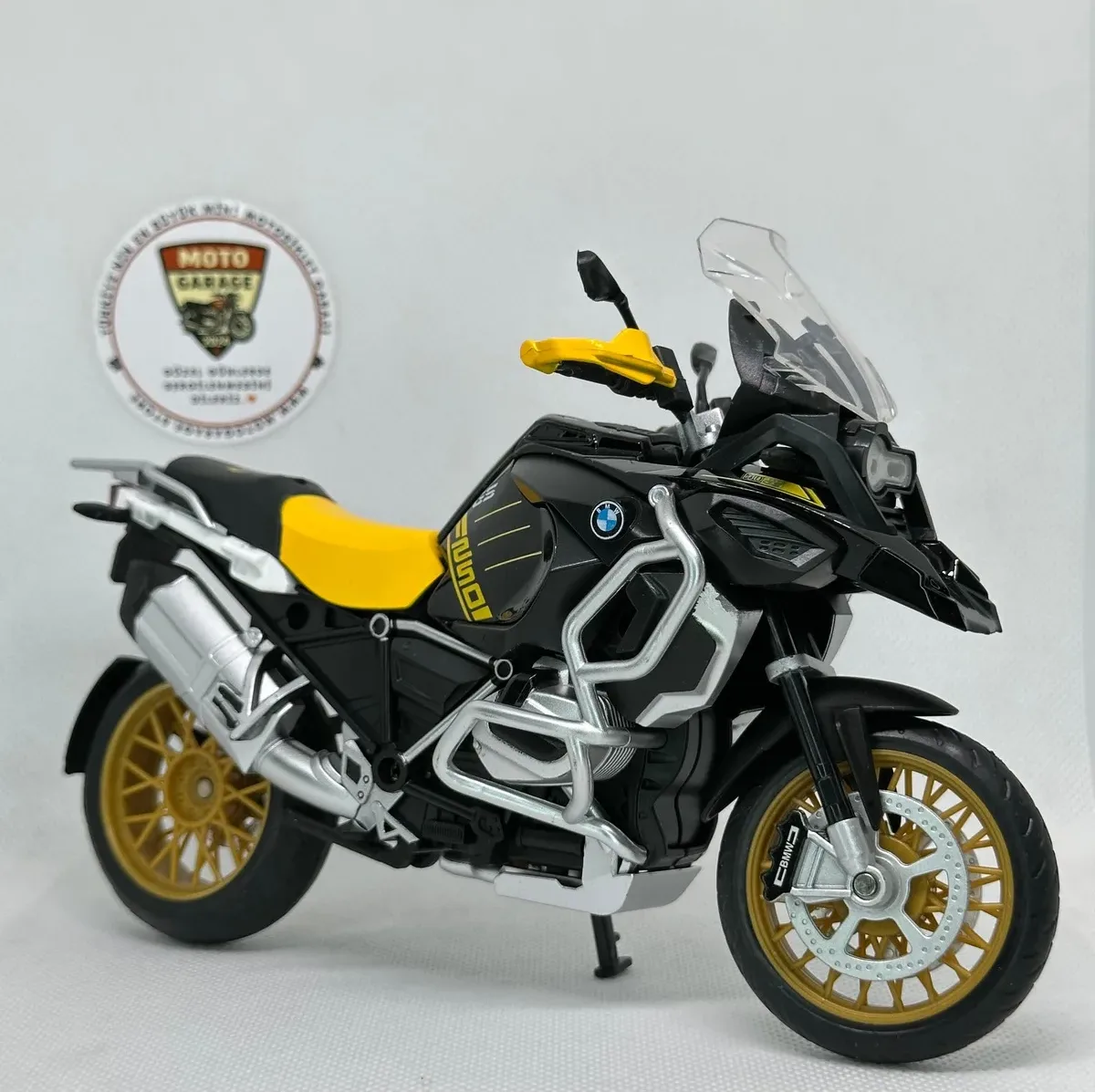 BMW R1250 GS 1:12 Diecast Maket Motor – Sarı Siyah Metal Model Motosiklet