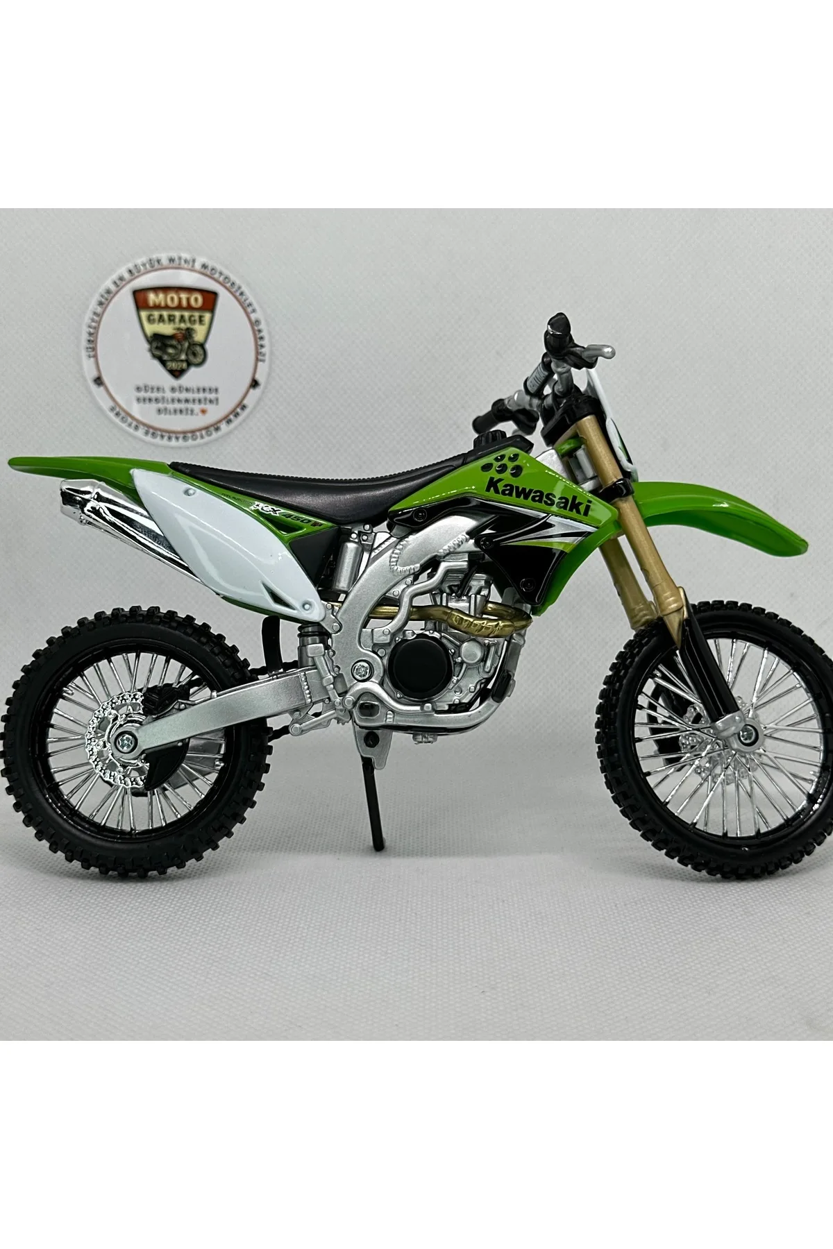 - Paket İçeriği: 1 Adet Kawasaki KX 450F 1:12 Maket Motor