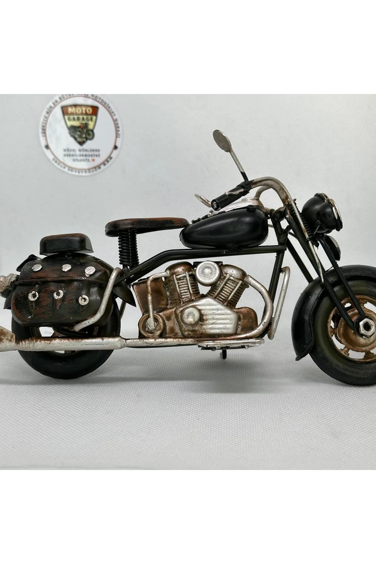 El Yapımı Siyah Chopper Metal Motosiklet Biblosu – Retro Koleksiyonluk Cruiser Figür